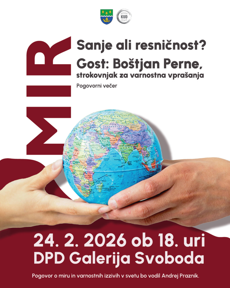 KUD Anton Jobst vas vabi na pogovorni večer z varnostnim strokovnjakom Boštjanom Pernetom, kjer bomo skupaj razmišljali o vprašanju miru – med sanjami, ideali in realnostjo sodobnega sveta. Dotaknili se bomo aktualnih varnostnih izzivov, globalnih napetosti ter vloge posameznika in družbe pri ohranjanju miru.